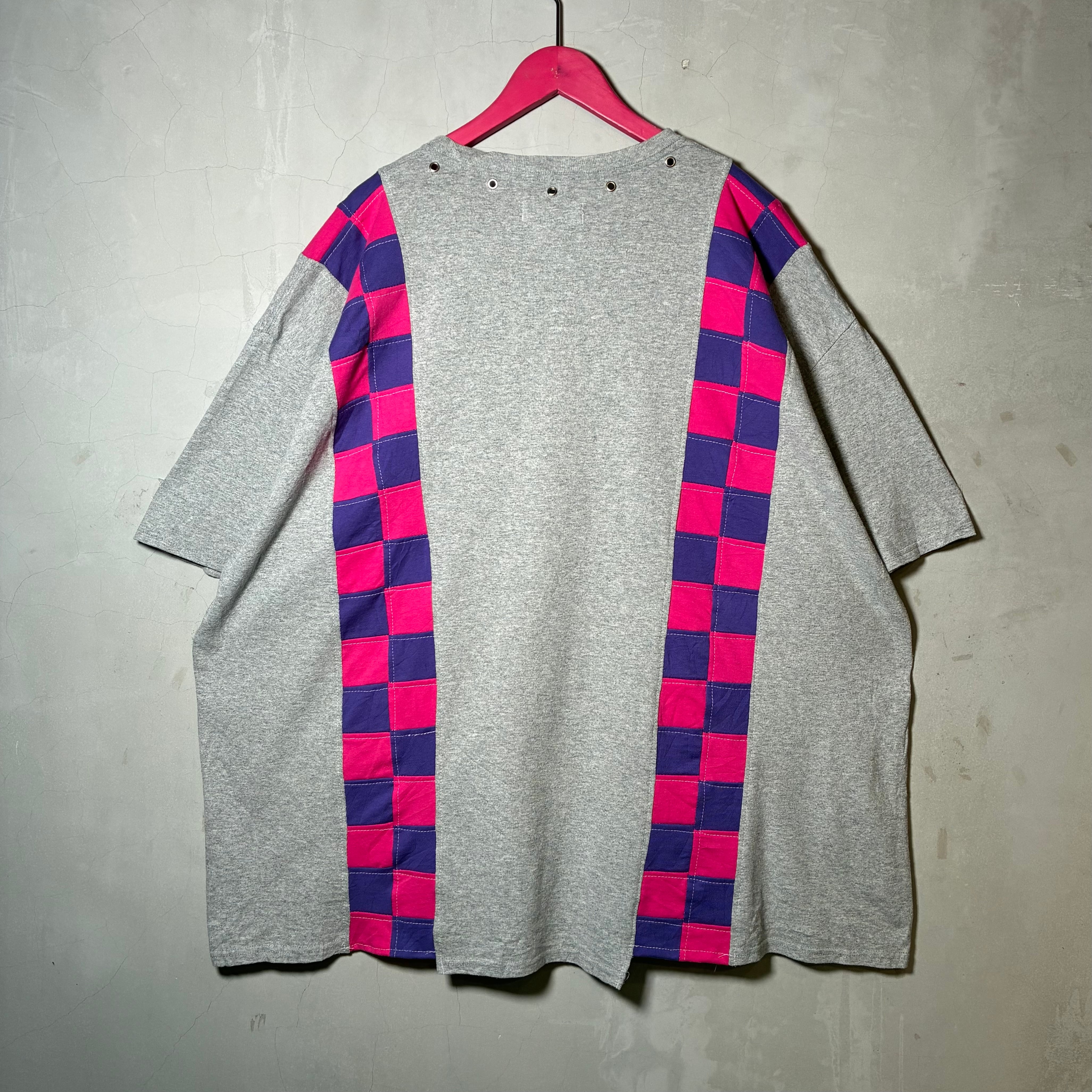 フラッグチェックパッチワークTシャツ『グレー』