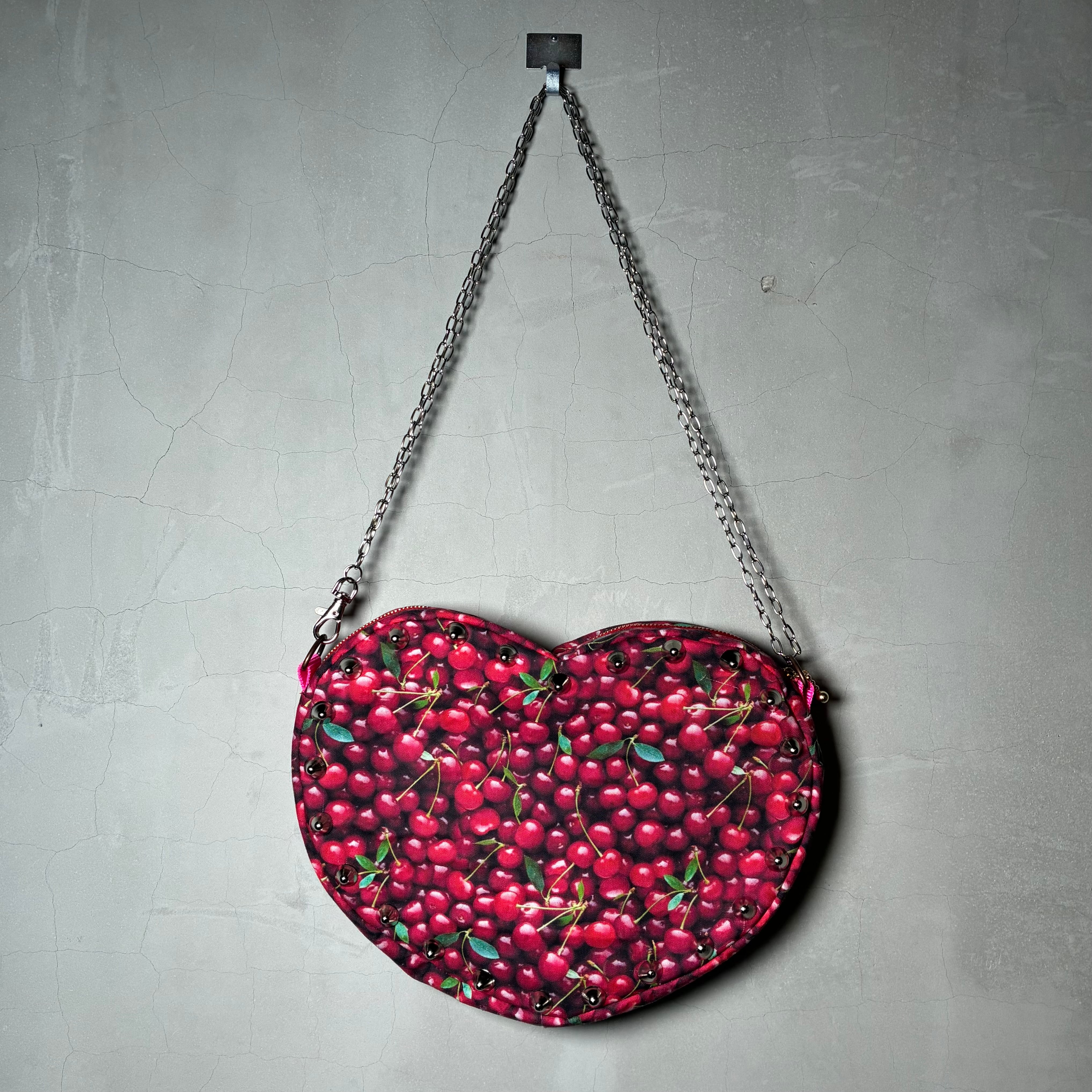 USコットンのチェリー柄の布を使ってバッグを製作しました。
