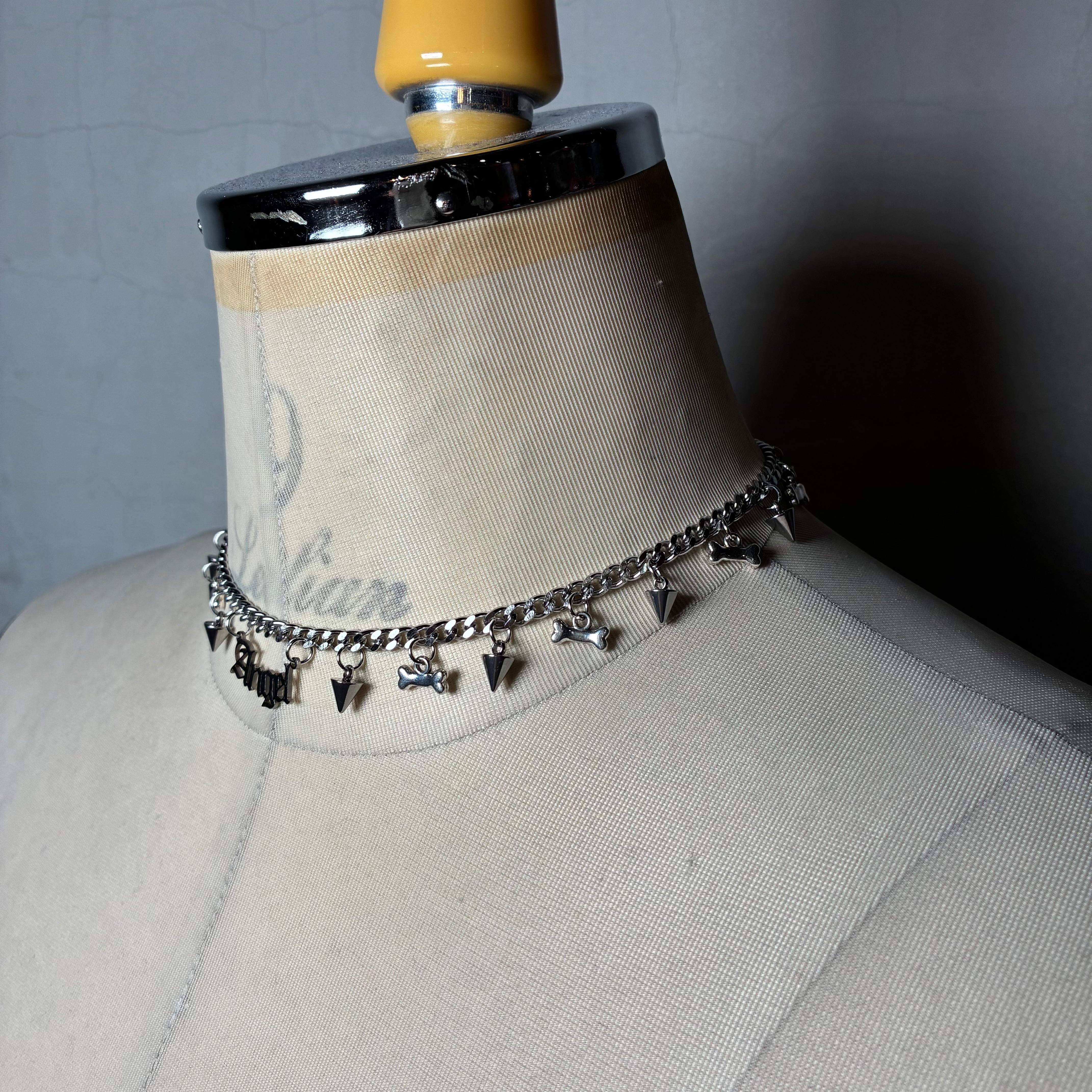 『Angel』チャームを中心に骨パーツ、スパイクパーツをMIXしたネックレス。