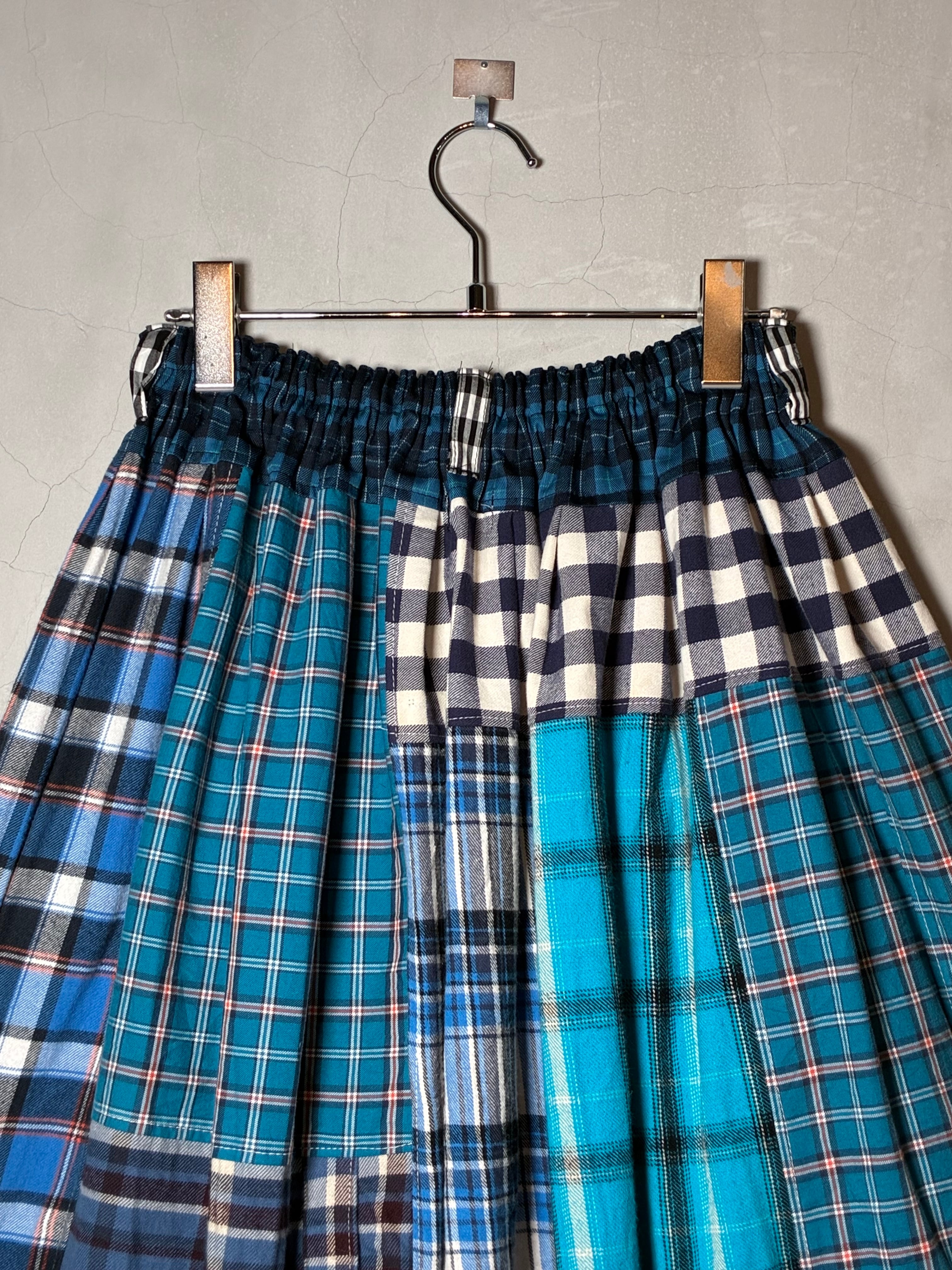 チェックシャツを解体して巻きスカート風のデザインにリメイク。