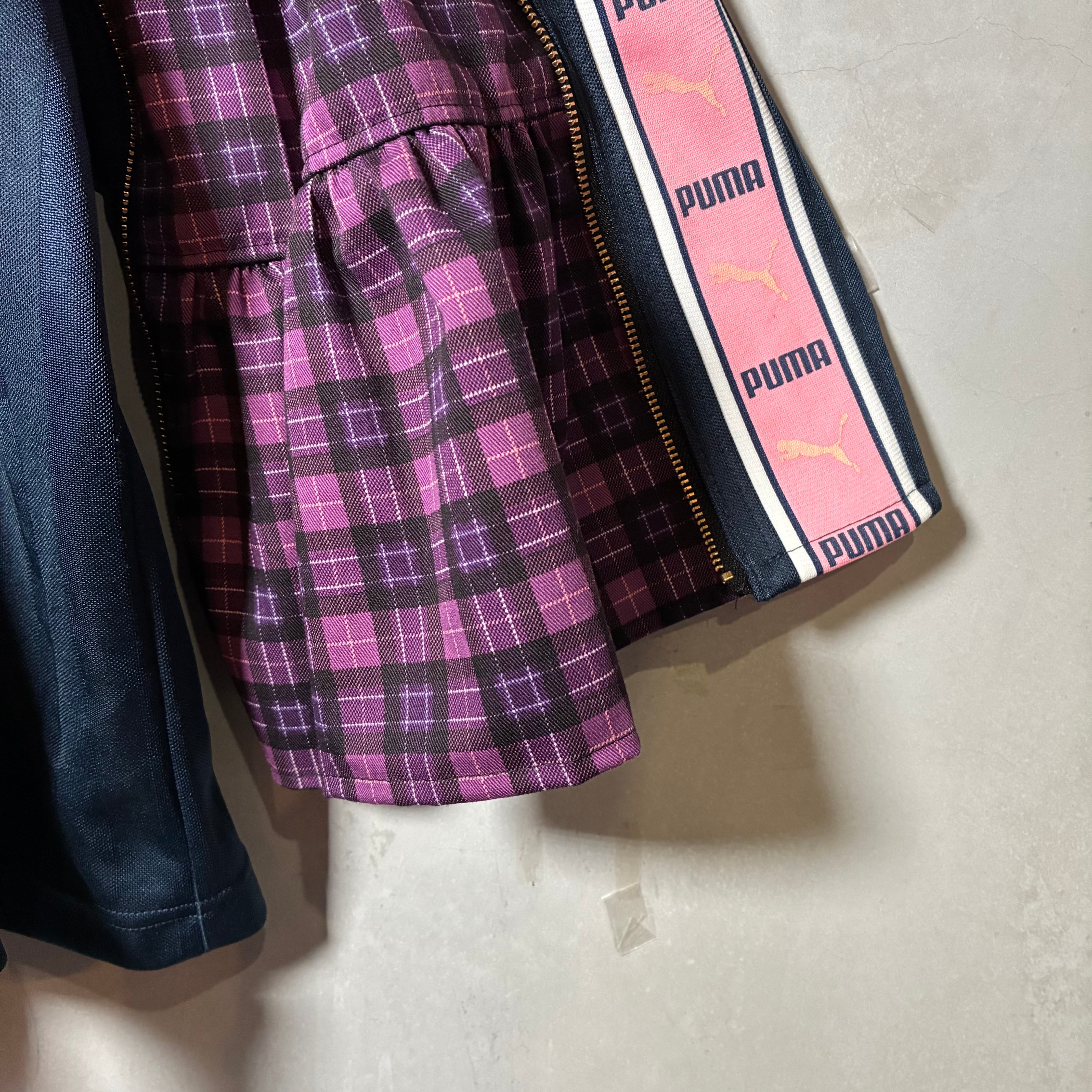 コチラはネイビー×ピンクのボディにパープルのチェックを組み合わせています。。