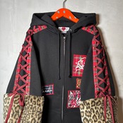 袖先のボアはこだわって探したもので、触り心地が良く、ボリューミーで理想的なヒョウ柄です。