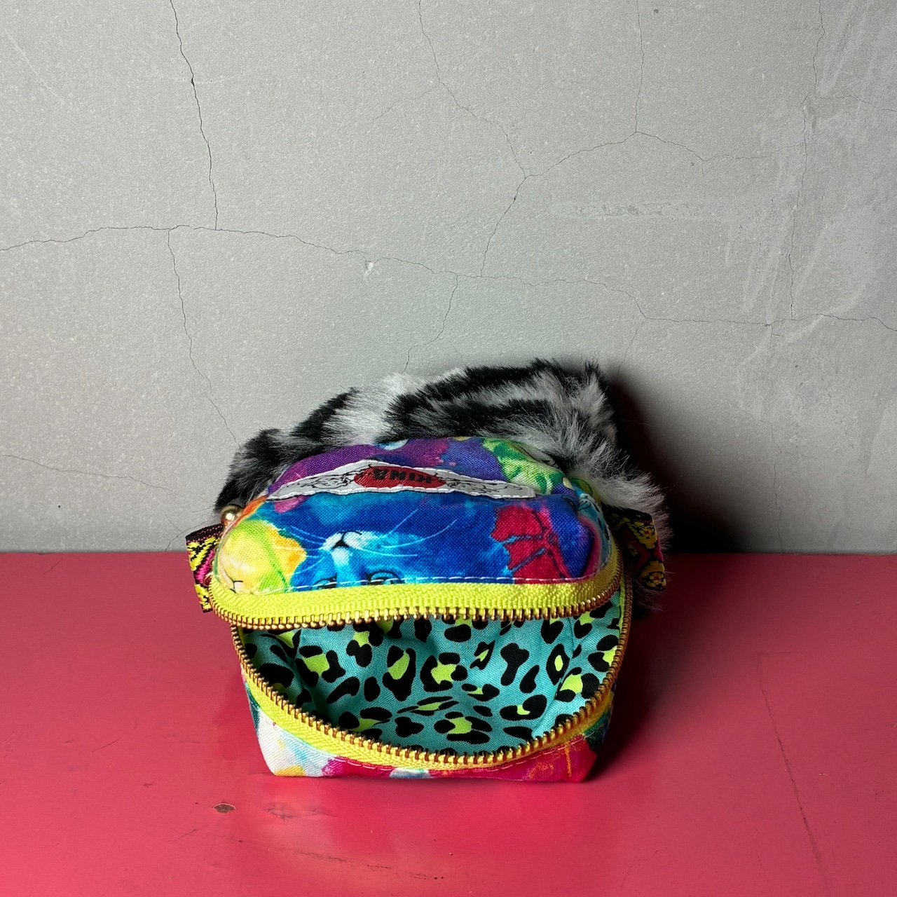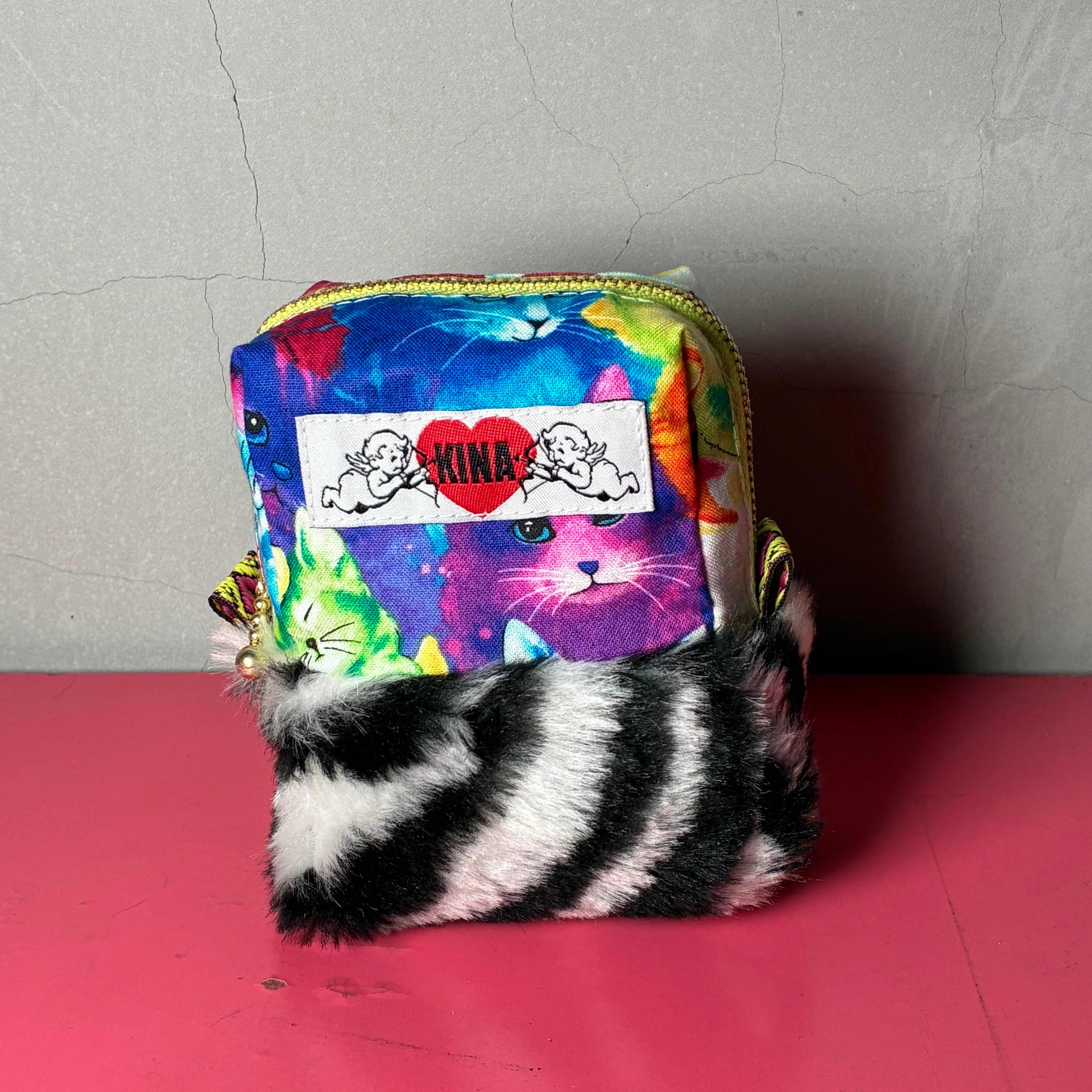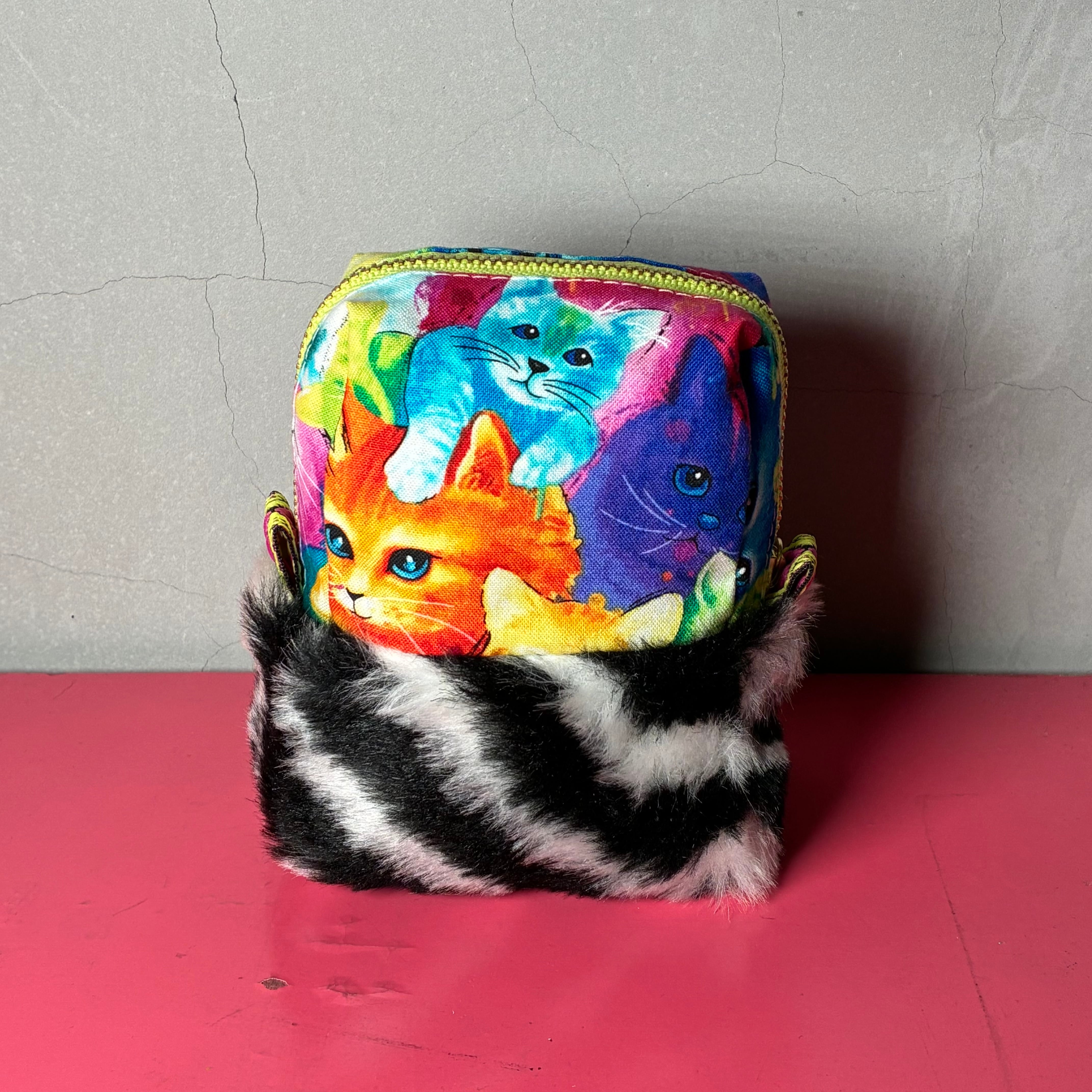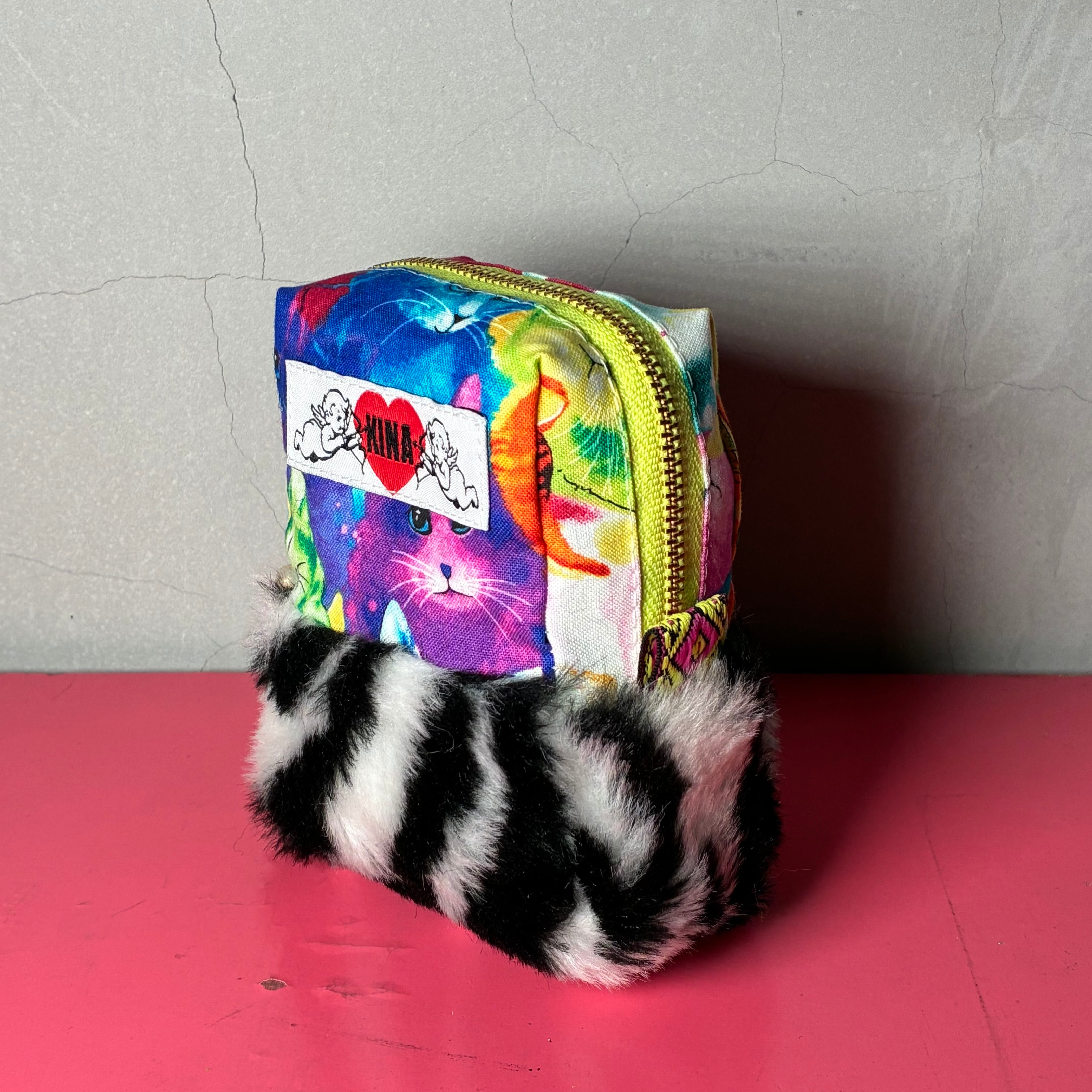 ハデハデモコモコポーチ小『カラフルねこ』