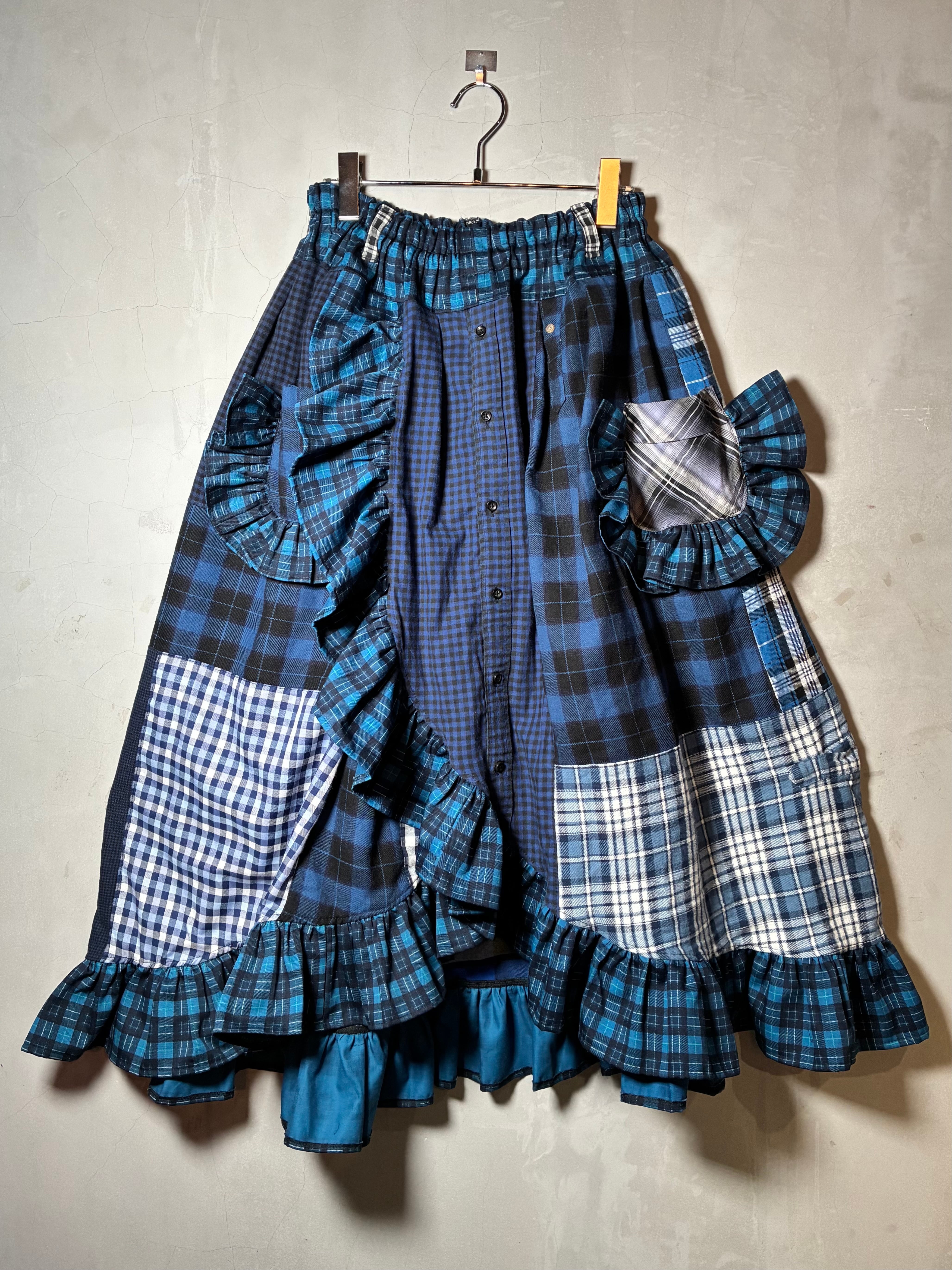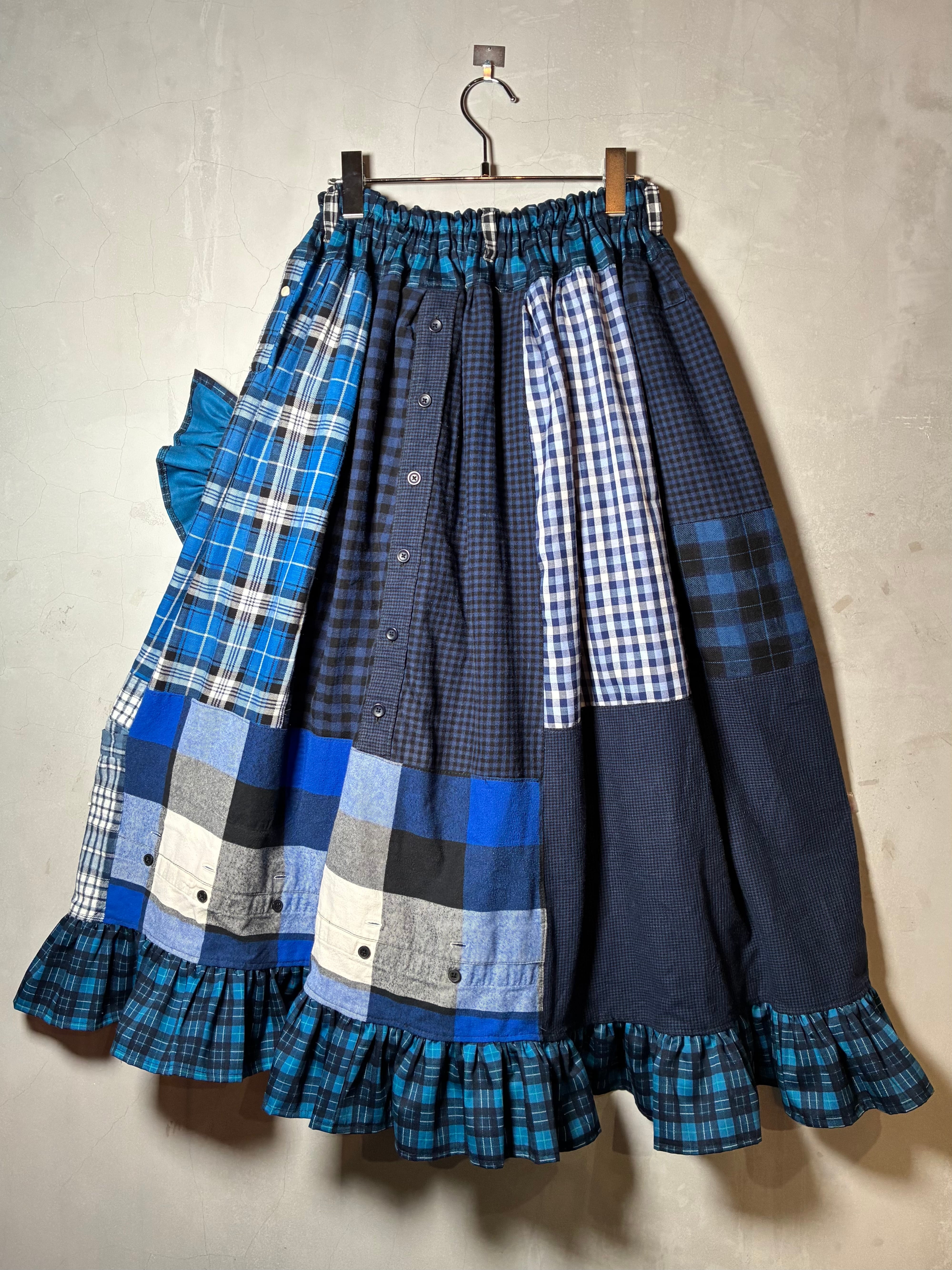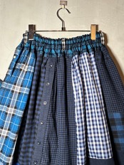 チェックシャツを解体してロング丈の巻きスカートにリメイク。