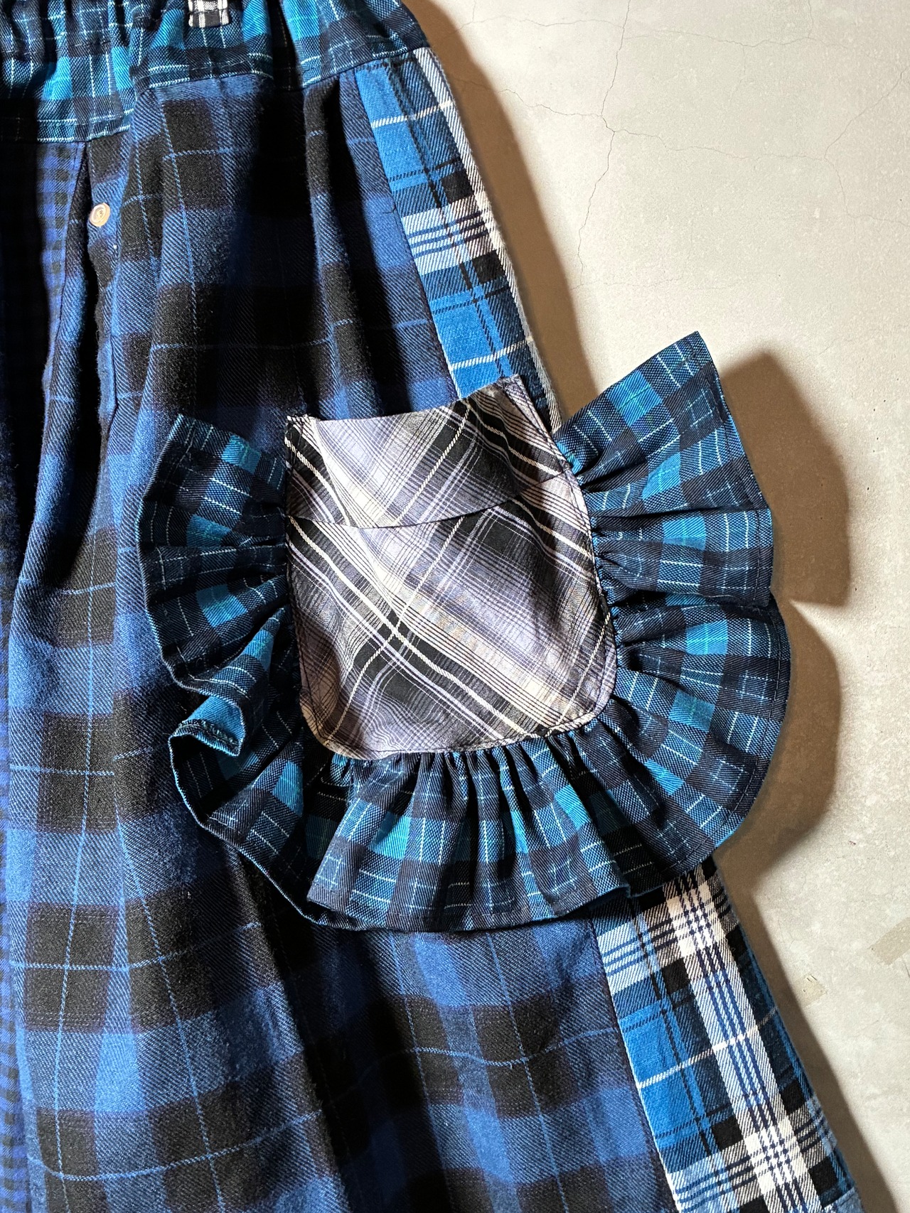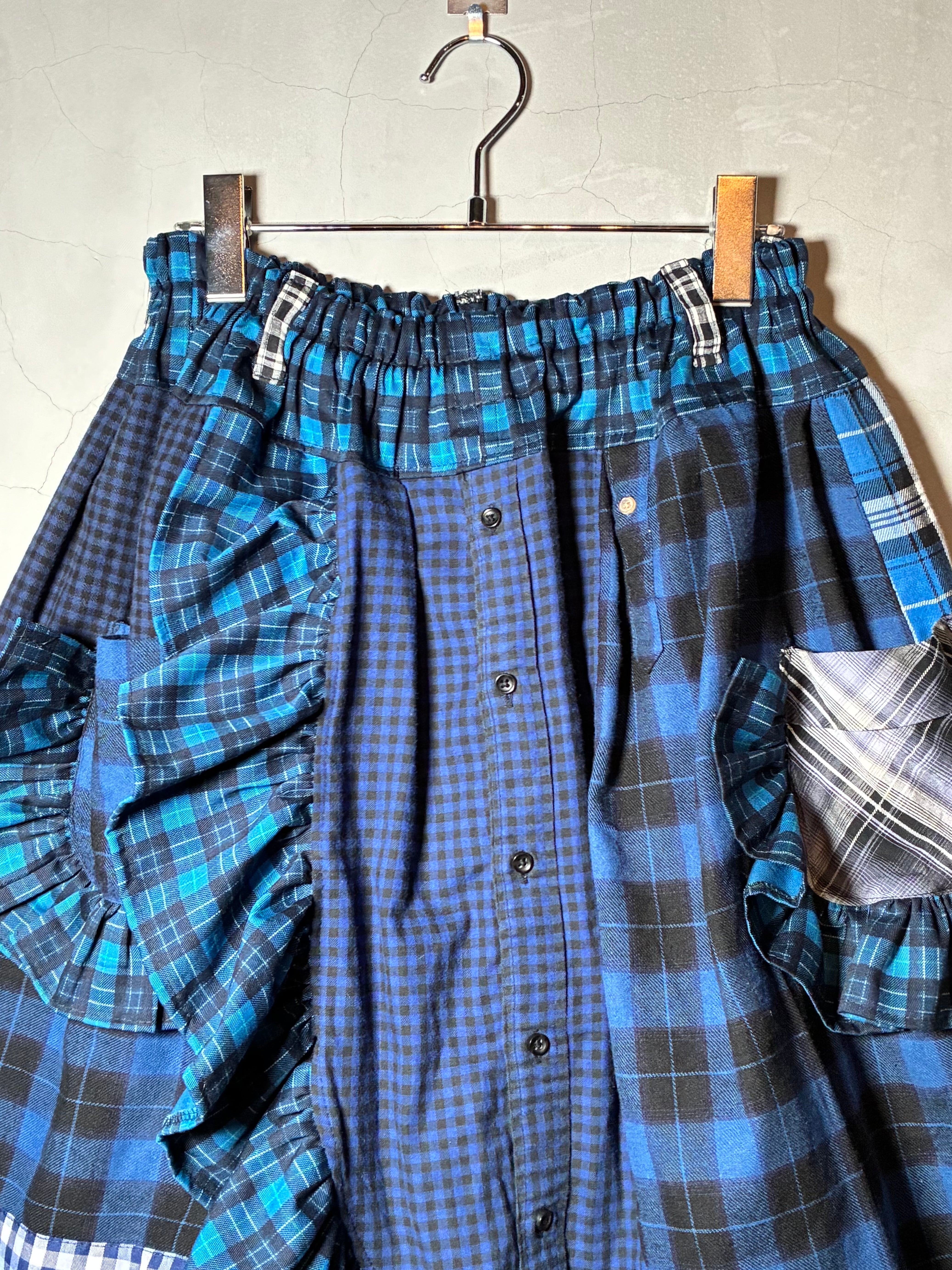 フリルチェック巻きスカート『ブルー』