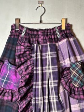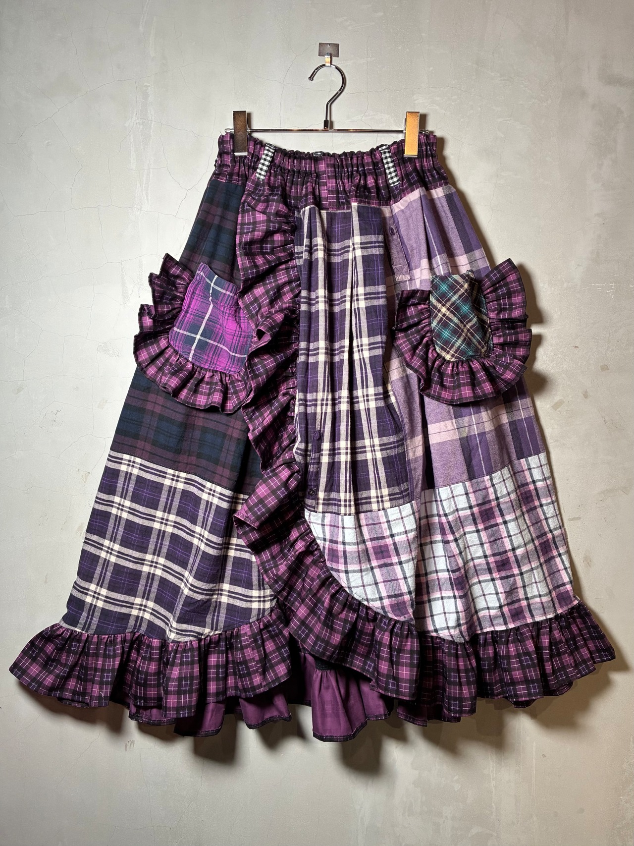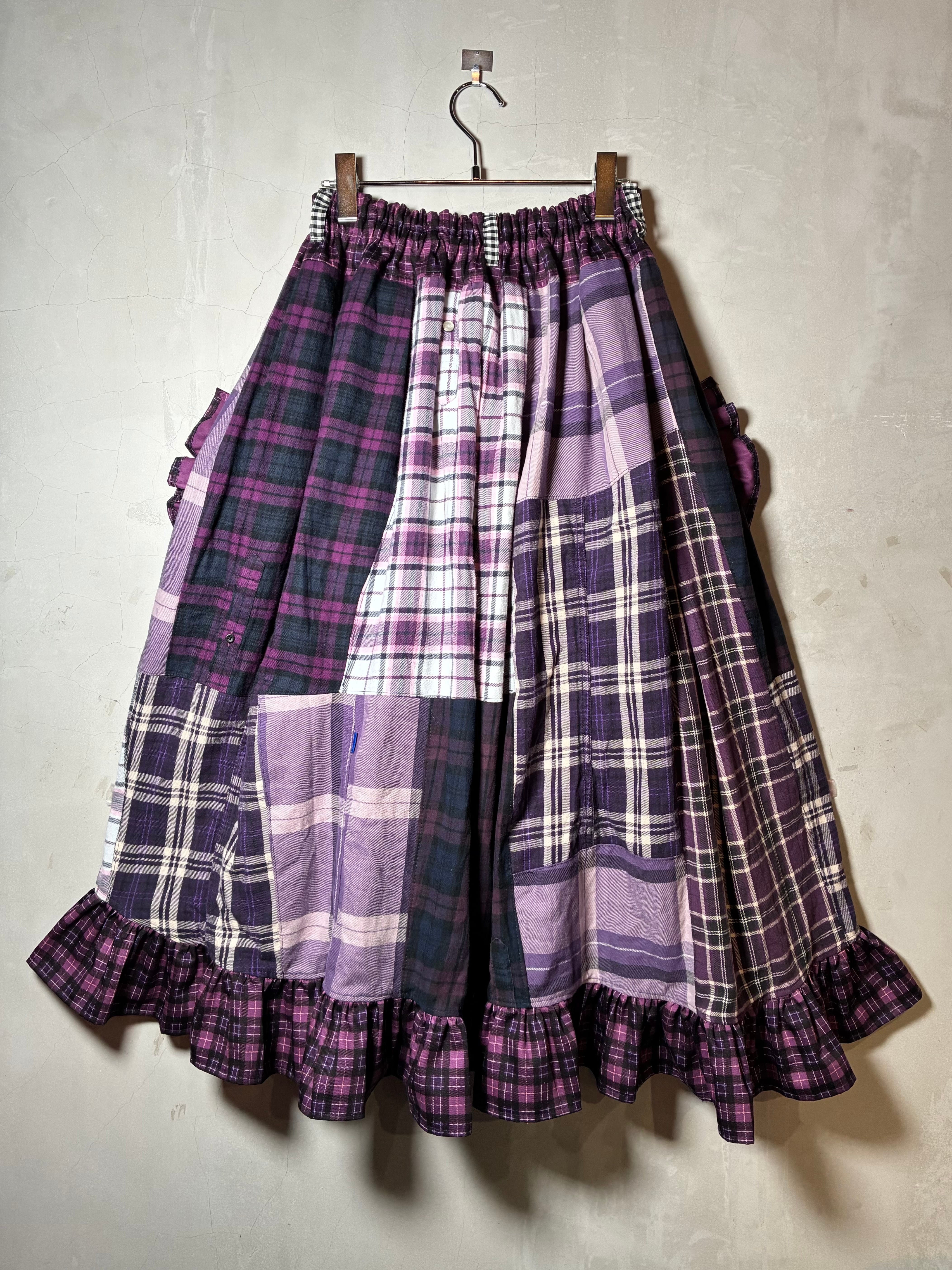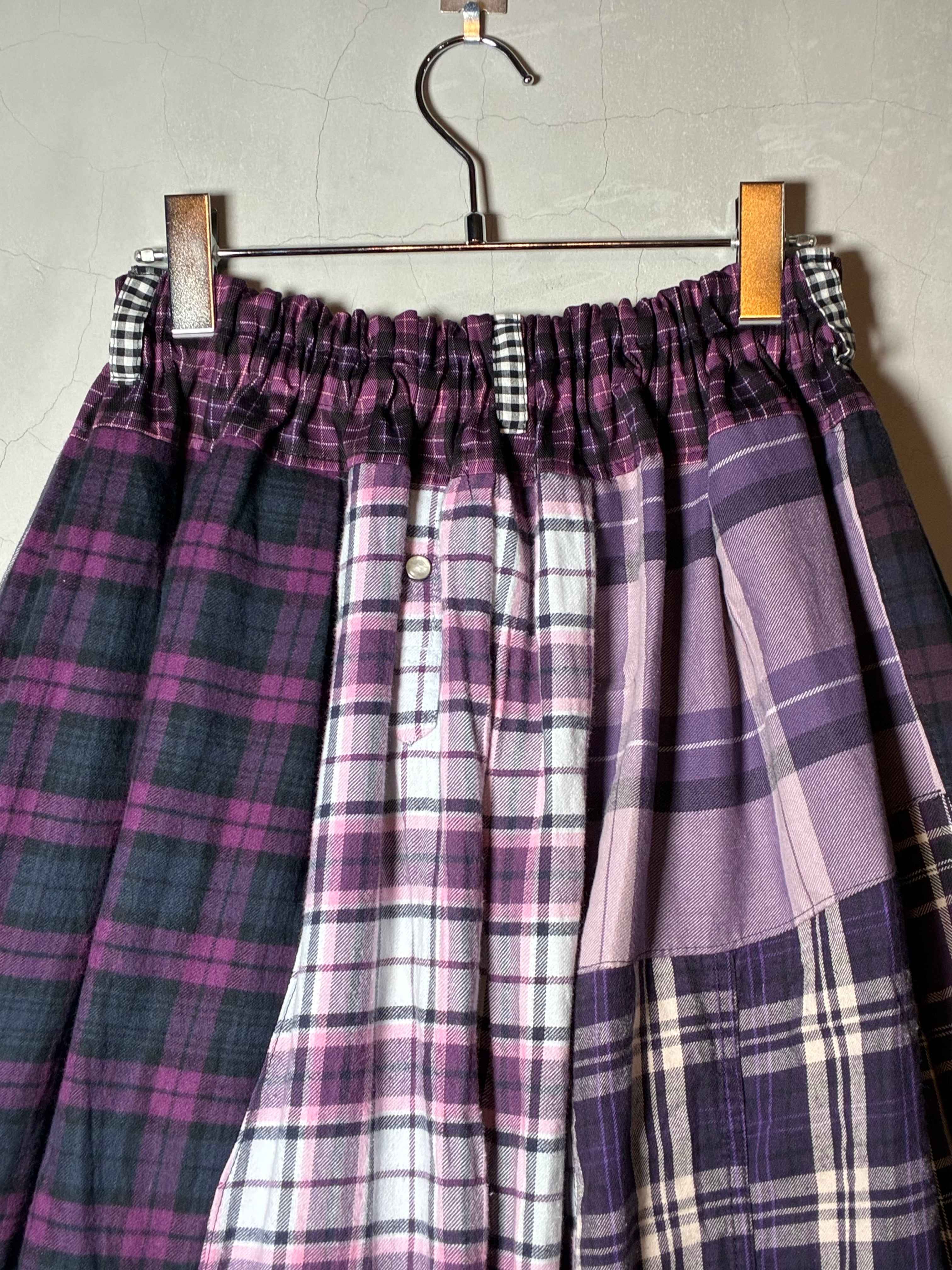 チェックシャツを解体してロング丈の巻きスカートにリメイク。