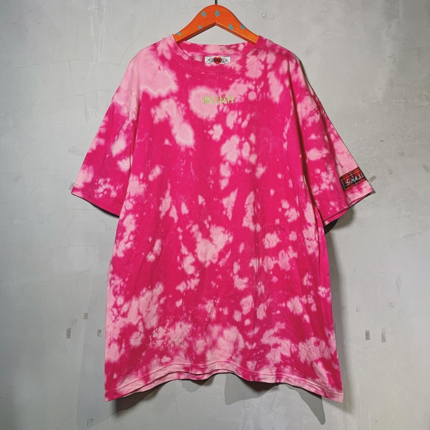 1点1点手作業でブリーチしたボディに刺繍とパッチをつけました。