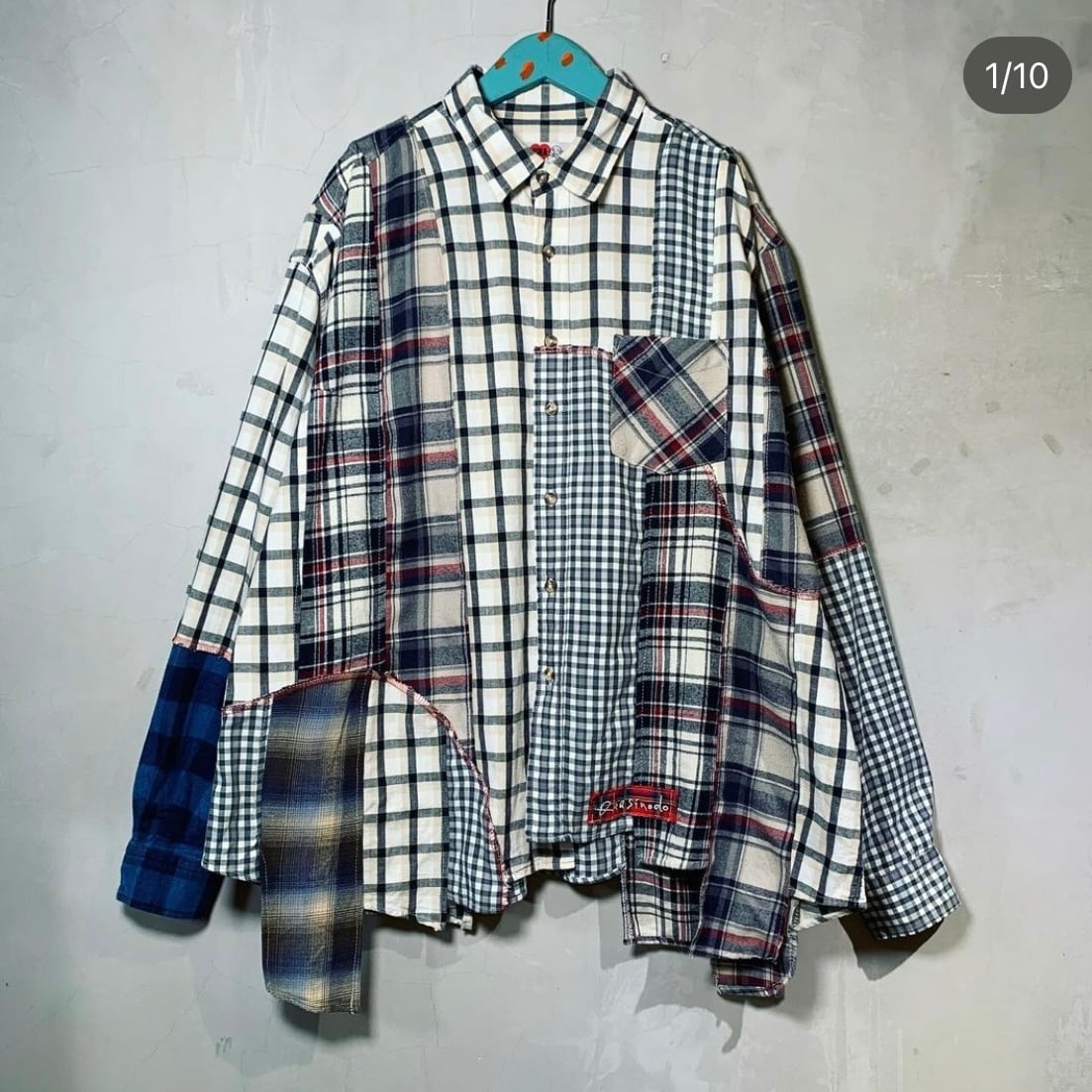 いろんなパターンをMIXしたKINAオリジナルリメイクシャツ。
